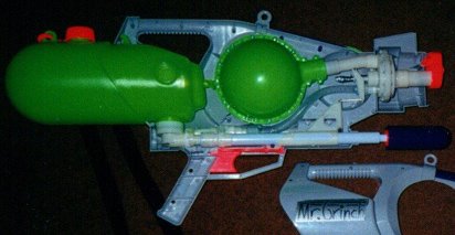 (taken from an empty Super Soaker box, used for holding the guns on the