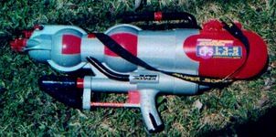 two triggers and a nozzle at each end, for effective soaking to opponents